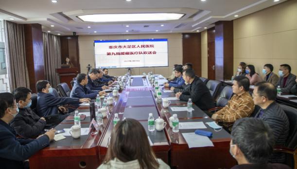 2月19日,大足區人民醫院舉(ju) 行了重慶市第九批(大足區第二批次)援藏醫療隊歡送會(hui) ,5位醫療隊員將踏上援藏之路,助力昌都市察雅縣人民醫院醫療水平的提高。大足區委常委、宣傳(chuan) 部長蔣朝彬、大足區衛生健康委黨(dang) 委副書(shu) 記楊徽建、大足區人民醫院全體(ti) 院領導以及相關(guan) 科室負責人出席歡送儀(yi) 式,院長助理謝惠主持儀(yi) 式。