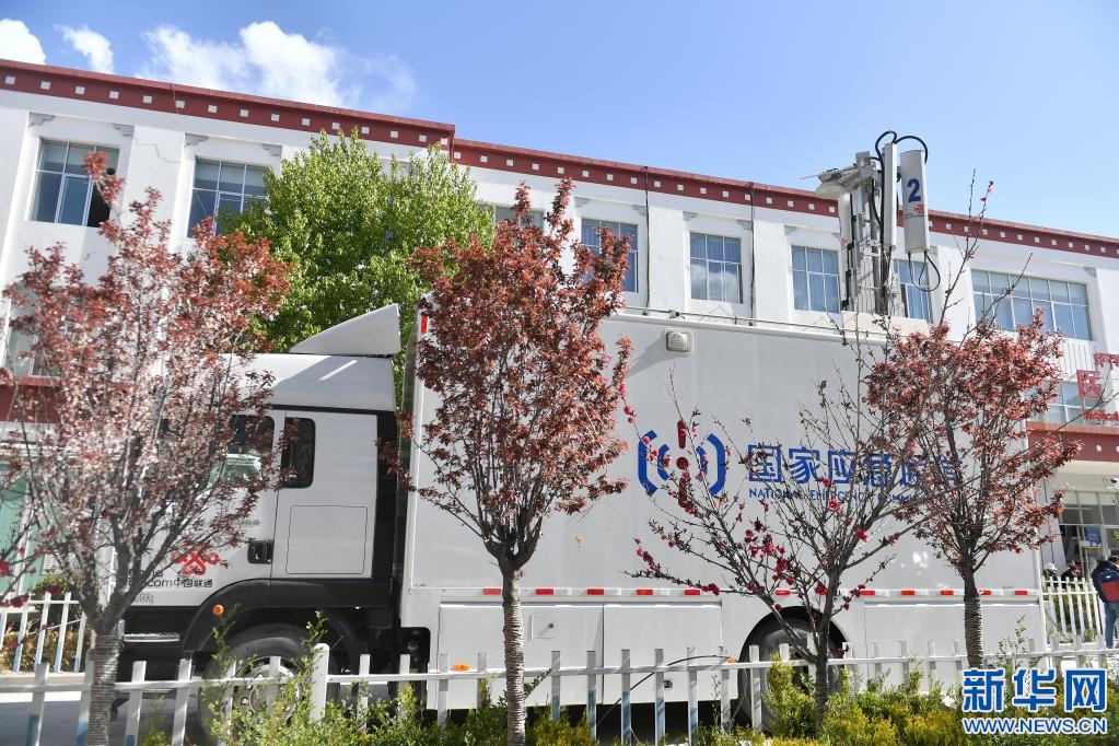 這是4月19日在拉薩市人民醫院拍攝的保障遠程骨科手術順利進行的通訊保障車輛。新華社記者 孫瑞博 攝