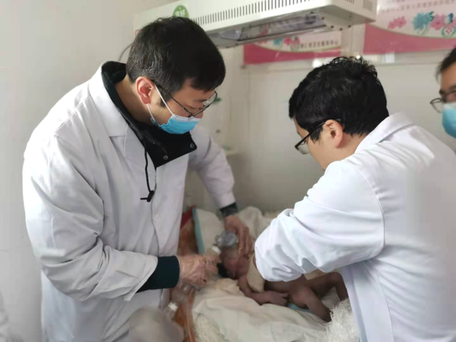 援藏醫療隊快速分工,組成新生兒(er) 複蘇團隊。呼吸球囊尚未到位,孫豐(feng) 濤毫不猶豫地為(wei) 孩子實施口對口人工呼吸。徐鴻宇立即給予“雙拇指環繞法”胸外心髒按壓,縣醫院婦產(chan) 科醫護人員積極協助。斷臍處理後,迅速將孩子移至暖台保暖,繼續胸外心髒按壓、呼吸球囊麵罩輔助呼吸。經過分秒必爭(zheng) 的搶救,孩子心跳恢複,全身皮膚轉紅潤,但呼吸和反應仍然不好。經過與(yu) 家屬溝通,徐鴻宇給予氣管插管,繼續人工輔助通氣,並將孩子轉往上級醫院繼續治療。在此期間,產(chan) 婦胎盤順利娩出,生命體(ti) 征平穩。