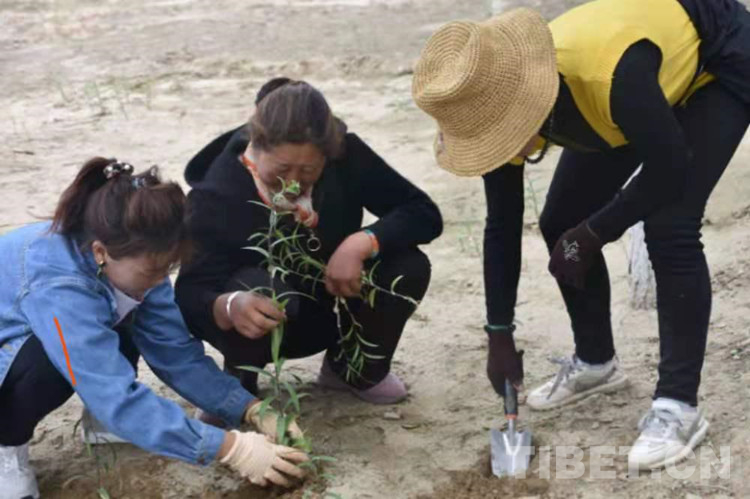 圖為(wei) 附近村民在藏草萬(wan) 畝(mu) 植物種苗繁育基地工作 攝影:拉姆