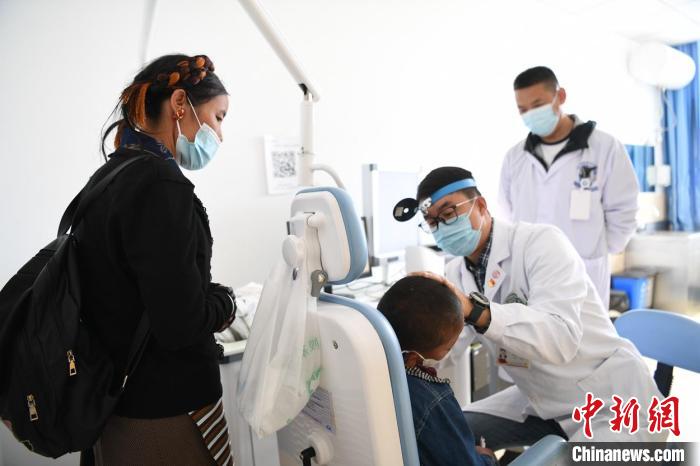 上海五官科醫院耳鼻喉科醫生曹鵬宇給藏族小朋友診病。 孫國根 攝