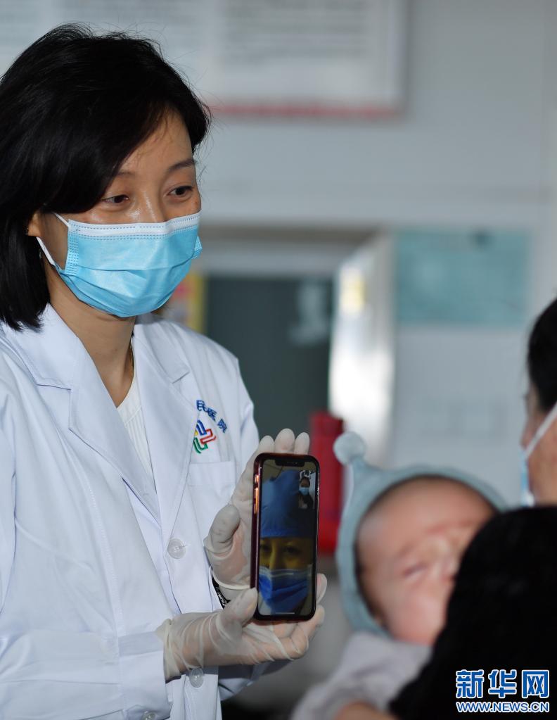 6月1日,在拉薩市人民醫院,來自北京的兒(er) 科專(zhuan) 家(左)幫助一名家長與(yu) 在北京的兒(er) 科專(zhuan) 家視頻連線。新華社記者 覺果 攝