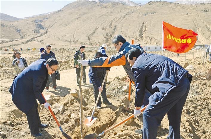 2012年,由山東(dong) 省濰坊市第六批援藏工作隊具體(ti) 負責的“湘河穀”經濟林生態產(chan) 業(ye) 扶貧項目在南木林縣實施。項目集旅遊觀光、苗木生產(chan) 、林產(chan) 品深加工、果品銷售於(yu) 一體(ti) ,總投資20億(yi) 元,規劃麵積10萬(wan) 畝(mu) 。最終形成地方政府、當地群眾(zhong) 、企業(ye) 共同受益的“全贏”局麵。 圖為(wei) 山東(dong) 省濰坊市援藏幹部正在栽植經濟林木(2012年3月12日攝)。 (本版圖片均為(wei) 資料圖片)