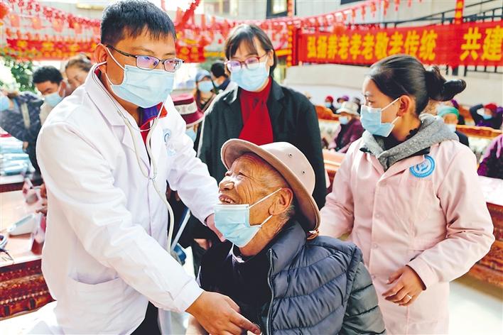 每年的10月是山南市瓊結縣的“敬老月”,2020年10月30日,縣衛生係統黨(dang) 總支組織縣人民醫院、藏醫院、疾控中心、醫保局等醫務工作者,在縣特困人員集中供養(yang) 中心開展了以“弘揚養(yang) 老孝老敬老傳(chuan) 統、共建共享老年友好社會(hui) ”為(wei) 主題的健康服務活動。讓老人們(men) 切切實實感受到黨(dang) 和政府的關(guan) 懷和溫暖,感受到全社會(hui) 的關(guan) 愛和重視。 圖為(wei) 縣人民醫院援藏醫生正在為(wei) 老人檢查身體(ti) (2020年10月30日攝)。