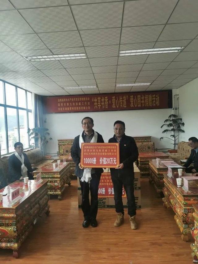 8月19日至23日,淄博高新區工委委員朱貽勝帶領淄博高新區代表團一行5人進藏考察對口支援工作。世紀天鴻教育科技股份有限公司、淄博華僑(qiao) 城實業(ye) 有限公司等愛心企業(ye) 向昂仁縣捐贈了1萬(wan) 冊(ce) 價(jia) 值20萬(wan) 元的圖書(shu) 、100件羽絨服等物品。淄博援藏領隊、昂仁縣委常務副書(shu) 記畢寶鋒,縣委常委、副縣長馬寧,副縣長張愛萍參加“共享書(shu) 香愛心傳(chuan) 遞”書(shu) 籍捐贈活動。