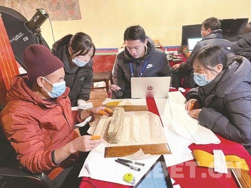 圖為(wei) 工作人員對古籍文獻進行登記、整理、分類、對勘 西藏自治區文物局供圖