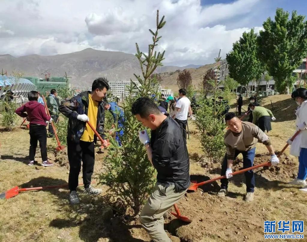在植樹現場,大家揮鍬鏟土、澆水培樹,一派熱火朝天的勞動景象,留下在拉薩的“綠色回憶”。本次植樹造林活動共種下雲(yun) 杉、海棠、紫葉李、蘋果樹、丁香等樹木約2000株。誌願者們(men) 還將定期開展日常養(yang) 護工作,鞏固綠化成果。
