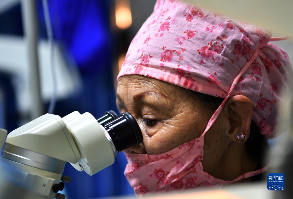 藏族眼科專(zhuan) 家卓嘎給患者實施複明手術(3月24日攝)。新華社記者覺果 攝