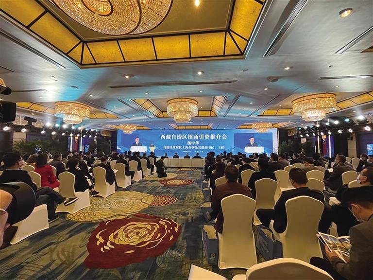 11月6日下午,由西藏自治區人民政府主辦、自治區發改委(招商引資局、投資促進中心)、自治區人民政府駐上海辦事處、日喀則市人民政府和上海市第十批援藏幹部人才聯絡組共同承辦的招商引資推介會(hui) “藏品入滬”選品品鑒暨上海首家“西藏特色產(chan) 品消費幫扶體(ti) 驗館”授牌儀(yi) 式在上海舉(ju) 行。上海市及相關(guan) 方麵近60家企業(ye) 參會(hui) ,現場簽約項目16個(ge) ,達成意向總投資363億(yi) 元。記者 譚瑞華