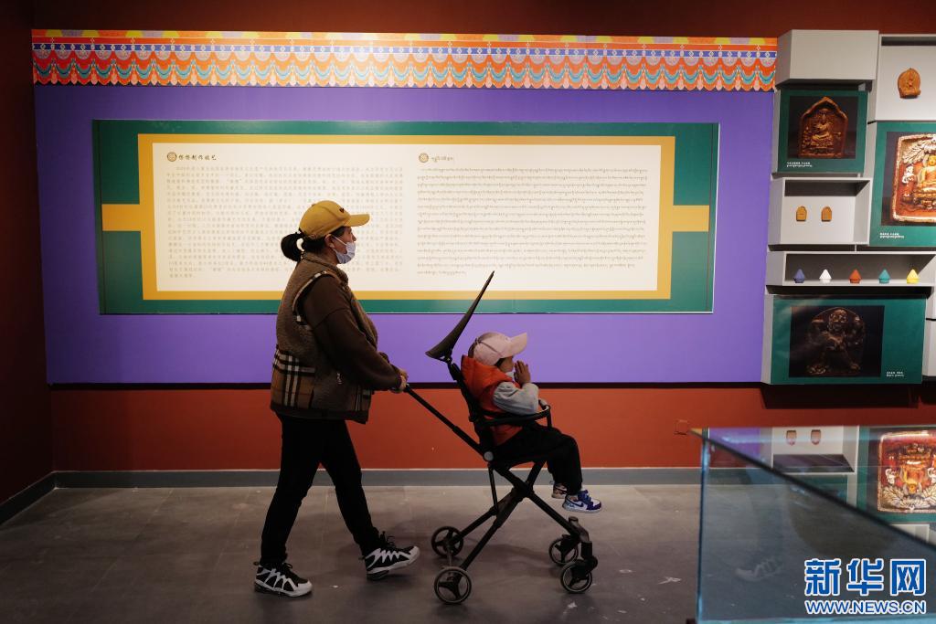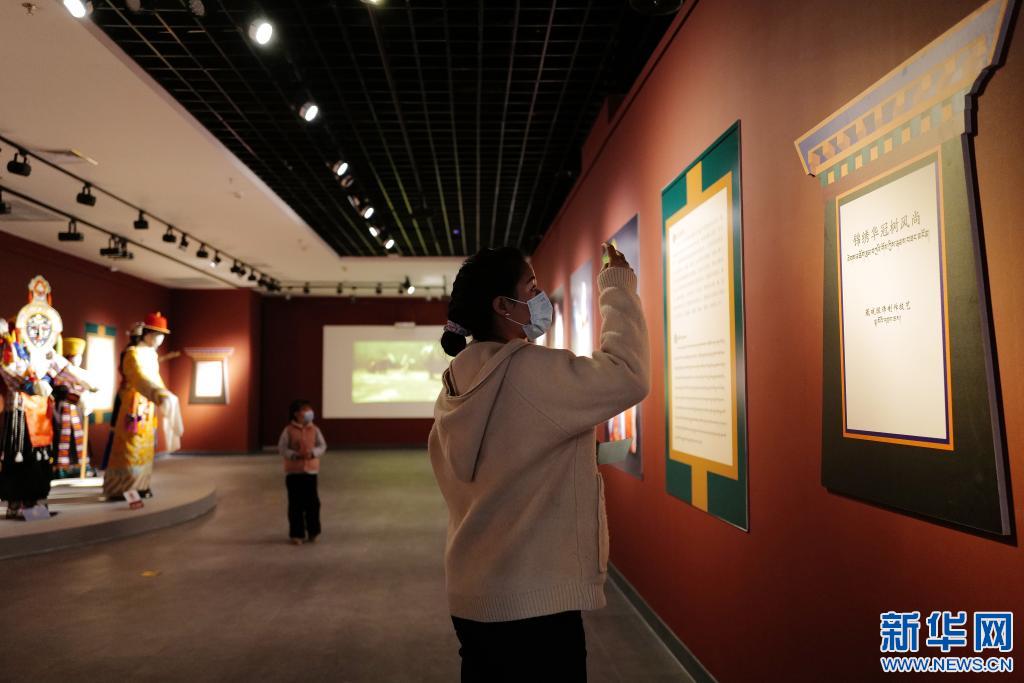 4月3日,一名小女孩在西藏犛牛博物館觀看拉薩市非物質文化遺產(chan) 代表性項目展。新華社記者 孫瑞博 攝