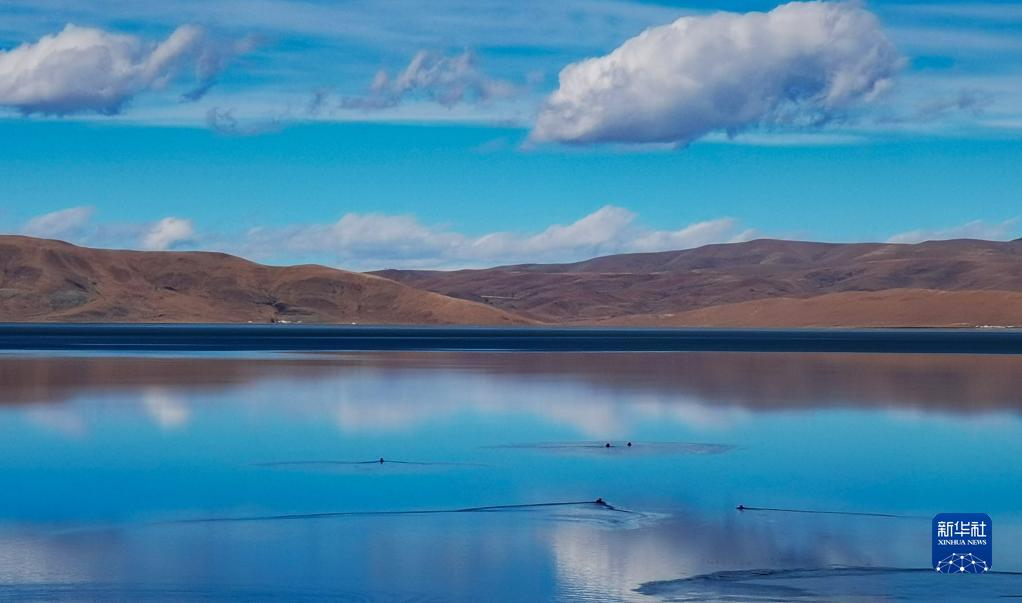 冬日的哲古湖,湖光、雪山、野生動物相映成趣(12月4日攝,手機照片)。新華社記者 沈虹冰 攝