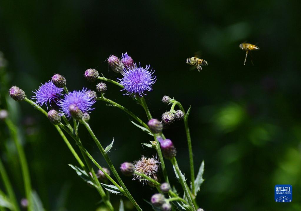 蜜蜂在拉魯濕地的花叢(cong) 間(6月21日攝)。新華社記者 張汝鋒 攝