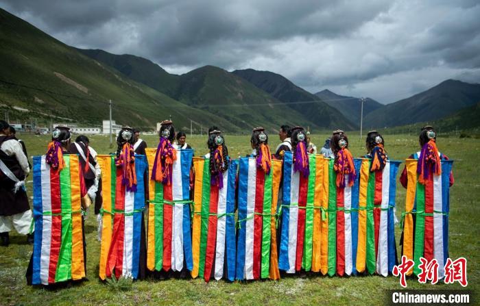 盛夏的西藏自治區拉薩市墨竹工卡縣門巴鄉(xiang) 仁多崗村草地上,28歲的尼瑪與(yu) 身著盛裝的藏族牧民們(men) 跳著國家級非物質文化遺產(chan) 直孔普堆巴宣舞,迎接遠道而來的遊客,動作優(you) 美的歌舞吸引了大家駐足觀賞,並用手機或相機記錄。