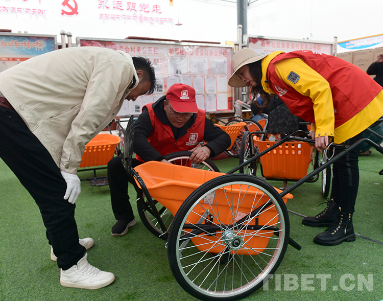 今年9月15日,那曲市安多縣帕那鎮帕那社區居委會(hui) 居民嘎達在領到撿拾車後,激動地說:“協會(hui) 給我們(men) 捐贈了非常實用的物品,大家都很喜歡,以後一定要好好使用它。”