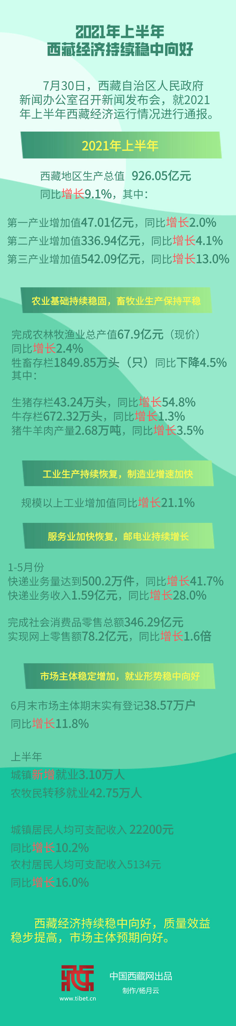 長圖丨2021年上半年西藏經濟持續穩中向好