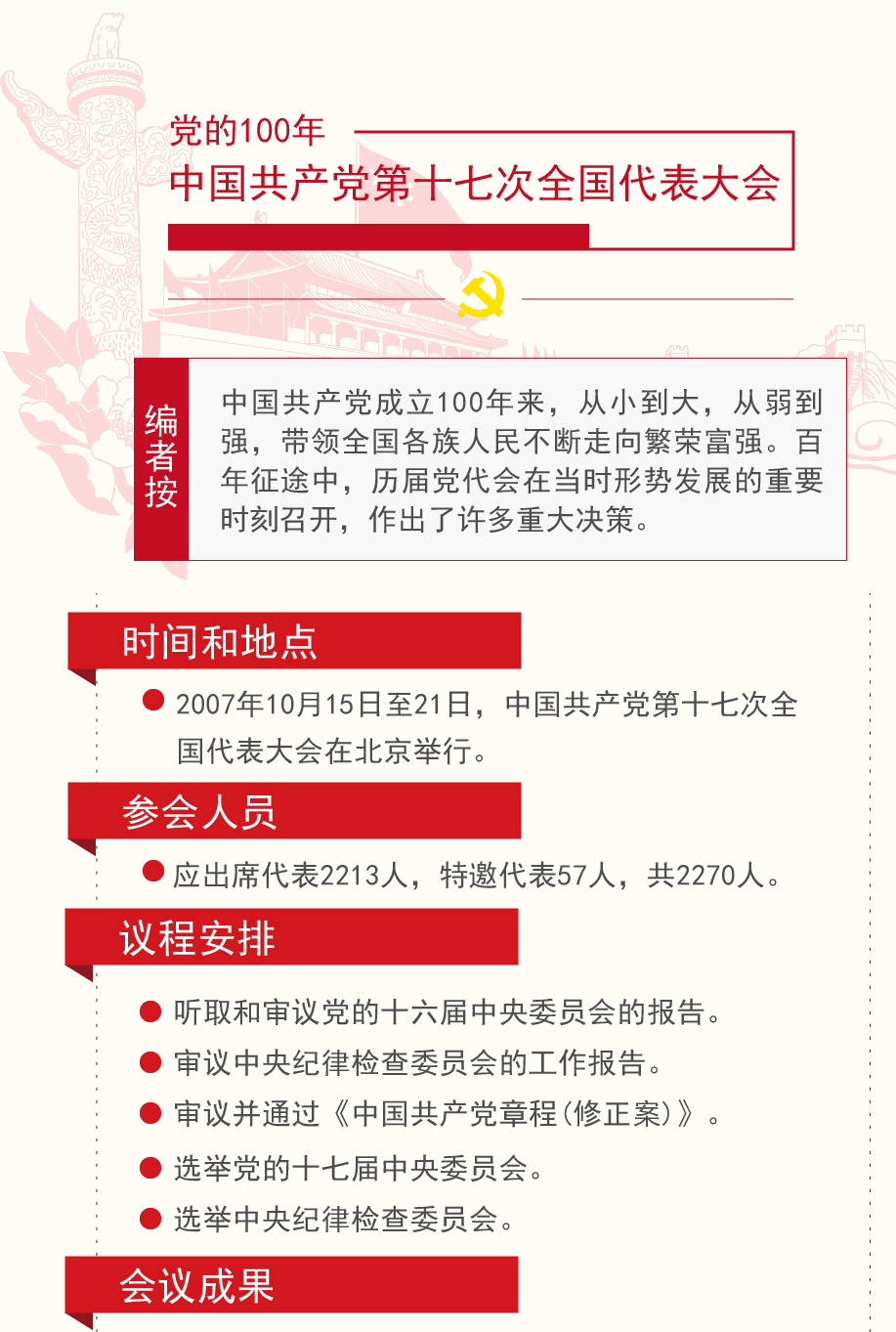 長圖|【黨的100年】中國共產黨第十七次全國代表大會