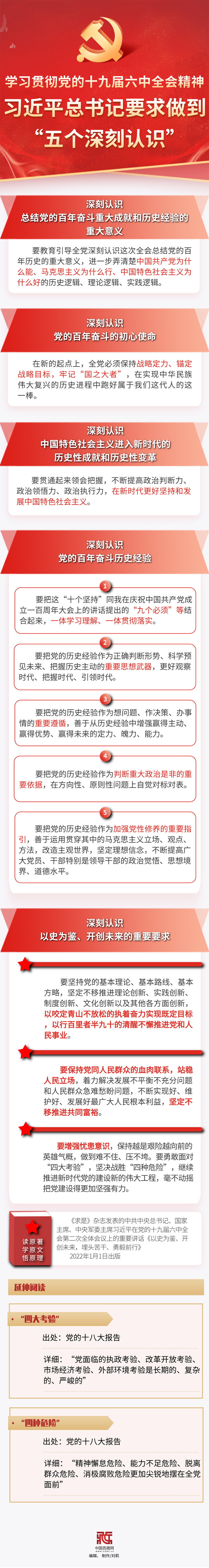 長圖|學習貫徹黨的十九屆六中全會精神 習近平總書記要求做到“五個深刻認識”
