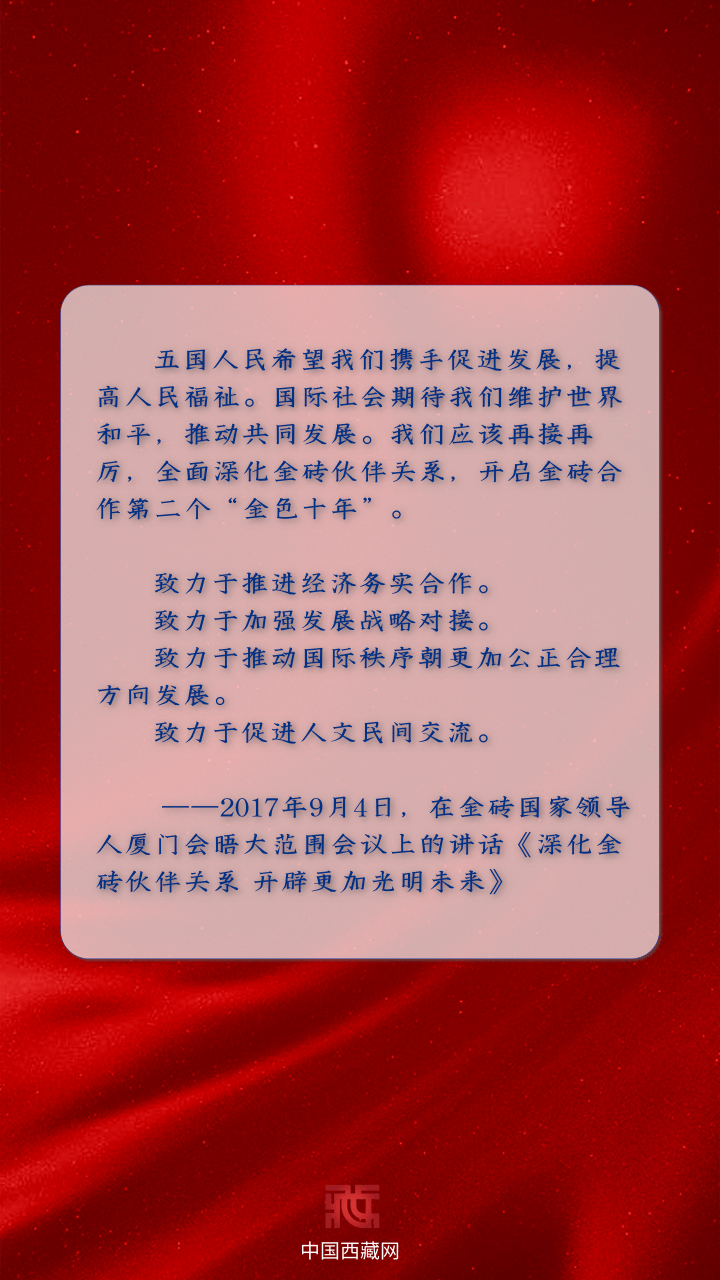2022年,中國作為(wei) 金磚國家主席國以“構建高質量夥(huo) 伴關(guan) 係,共創全球發展新時代”為(wei) 主題開展工作,必將進一步推動金磚國家合作取得新發展。讓我們(men) 重溫10年來,國家主席習(xi) 近平關(guan) 於(yu) “金磚”的論述。