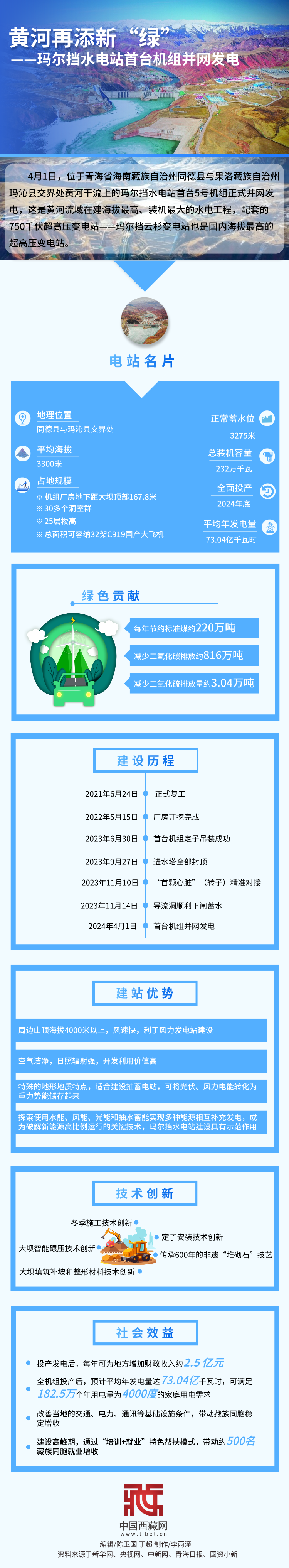 黃河再添新“綠”——瑪爾擋水電站首台機組並網發電