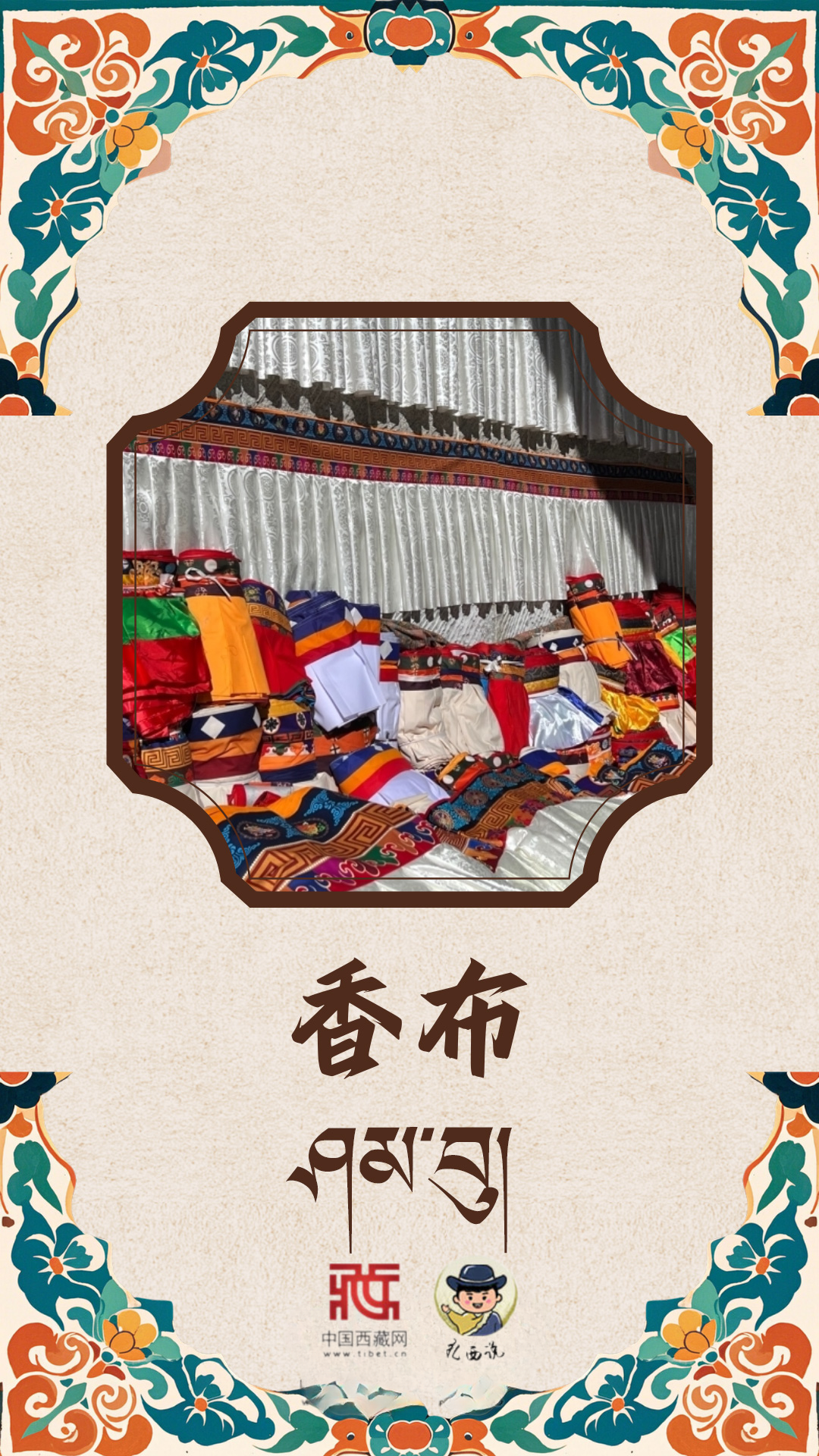 “香布”是藏式建築的裝飾,通常一年一換,用五彩棉布縫製,主體(ti) 為(wei) 白色,搭配紅藍黃等色的邊沿,對窗沿等的顏料及木構件起到保護作用。“香布”是人們(men) 迎接藏曆新年的必備“年貨”之一。這一沿襲已久的傳(chuan) 統習(xi) 俗,承載著祈求吉祥的美好寓意。