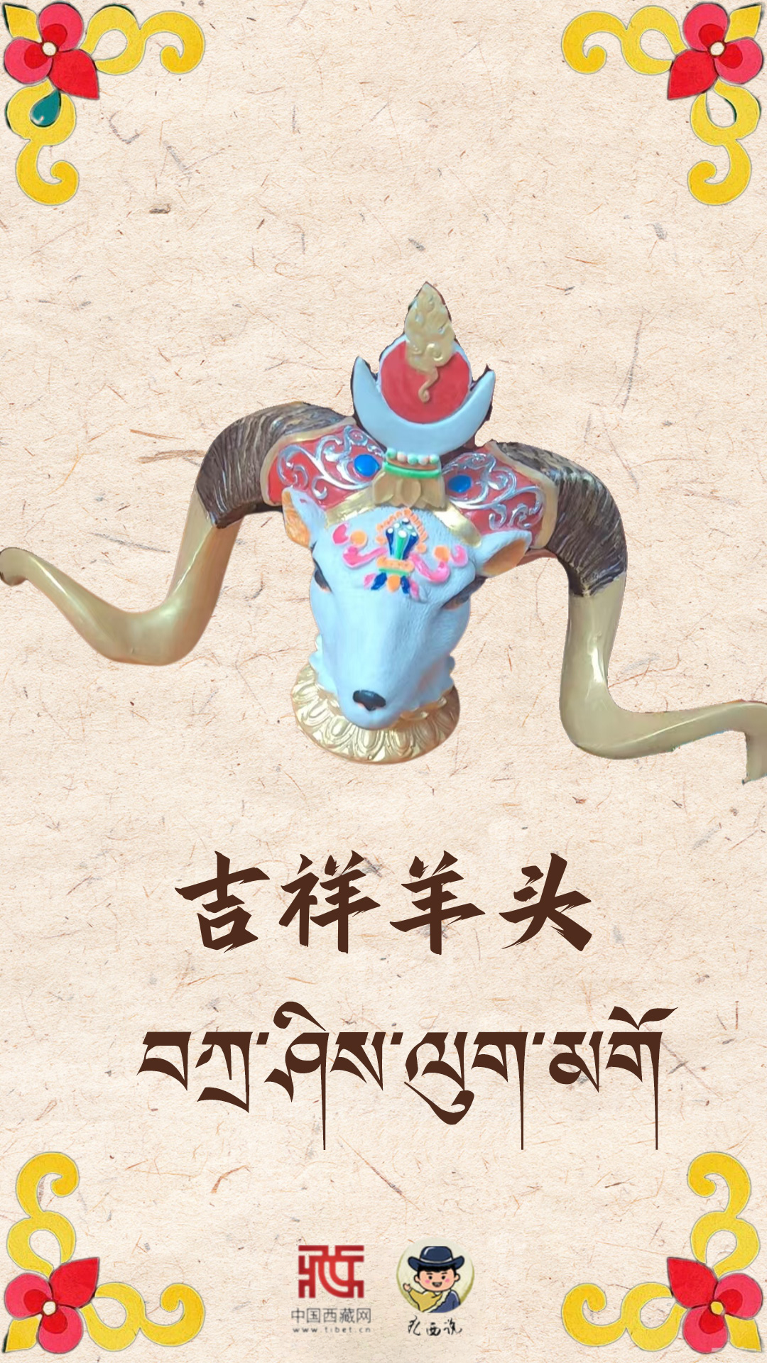 吉祥羊頭是藏曆新年的供桌上必不可少的一部分,是一種用陶瓷、石膏等不同材質製作的塑彩羊頭,寓意著五穀豐(feng) 登、六畜興(xing) 旺。