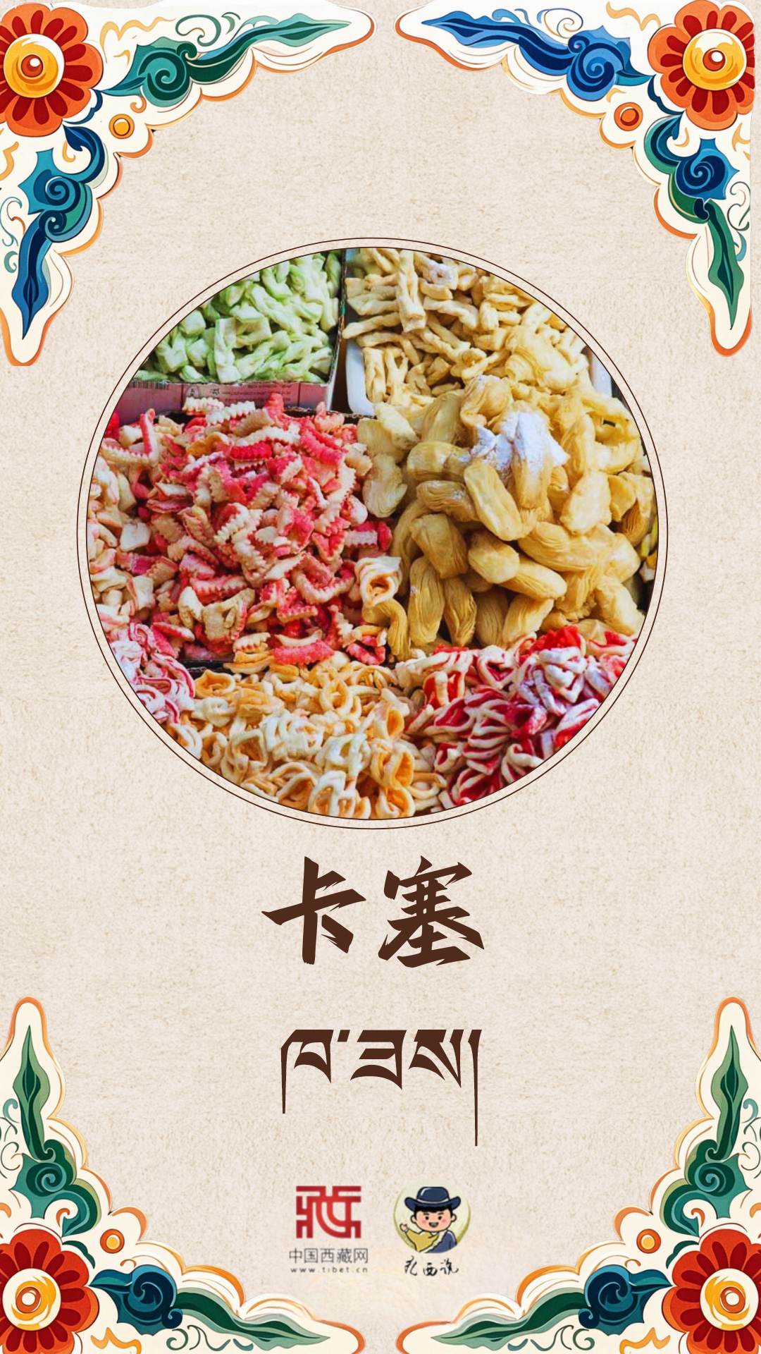 卡塞是藏曆新年不可或缺的傳(chuan) 統美食,寓意著來年五穀豐(feng) 登、生活美滿。這是用酥油、菜油等炸成的一種麵食,分為(wei) 耳朵形、蝴蝶形、花瓣形、條形、方形等各種形狀,為(wei) 了更加美觀,花瓣形的卡塞會(hui) 被塗上各種鮮豔的顏色和圖案。