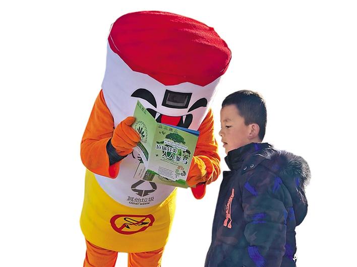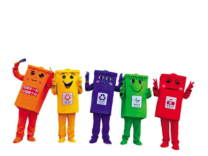 5個(ge) 宣傳(chuan) 垃圾分類的卡通人偶。本版資料圖片均由記者 央金 攝