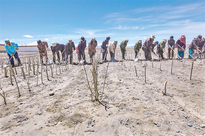 近年來,西藏大力推進大規模國土綠化行動,確保全麵消除海拔4300米以下的“無樹村”和“無樹戶”。西藏阿裏地區在推進國土綠化行動中,積極引導有條件的群眾(zhong) 在房前屋後植樹種草,確立了“城見綠蔭、鄉(xiang) 成景觀、村有片林、組見樹叢(cong) 、戶有樹木”的綠化目標,大力開展生態村建設和全麵綠化國土行動。