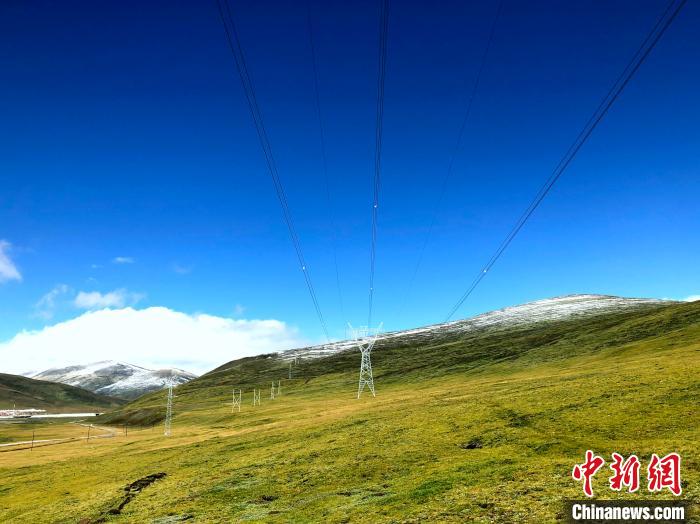 圖為(wei) 世界海拔最高的330千伏輸變電工程玉樹聯網工程輸電線路穿越高山草原。惠文莉 攝