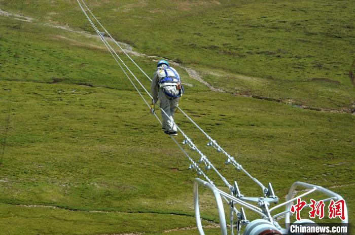 圖為(wei) 世界海拔最高的330千伏輸變電工程玉樹聯網工程開展年度檢修工作。鄒建華 攝
