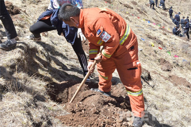 圖為(wei) 昌都市森林消防支隊江達中隊積極參加駐地植樹活動