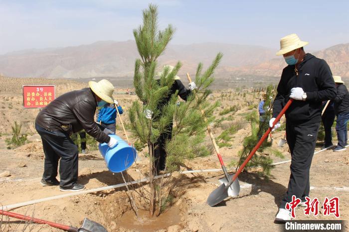 圖為(wei) 黃南州同仁縣幹部職工植樹現場。 同仁縣委宣傳(chuan) 部 供圖