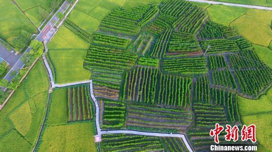 2019年8月24日,航拍江西省安遠縣鳳山鄉(xiang) 東(dong) 河村進入采收季的紫山藥基地。 (資料圖) 王劍 攝