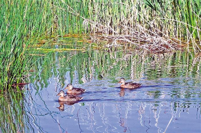 夏日的拉魯濕地美如畫。這是野鴨在拉魯濕地的水麵上遊弋。記者 洛桑 攝