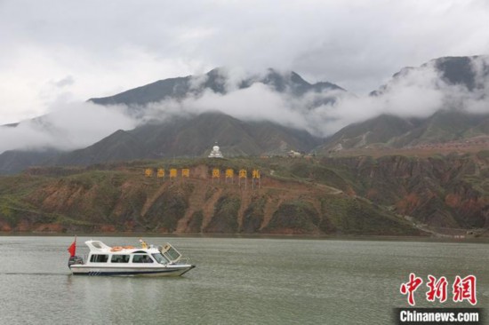 8月14日,青海省尖紮縣德吉村黃河岸邊的景色。 中新社記者 張添福 攝