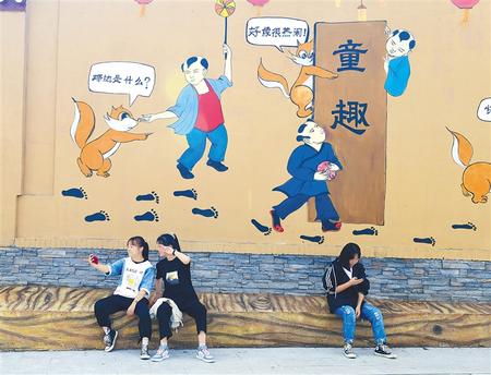 古占村別具一格的庭院壁畫吸引遊客拍照留念。