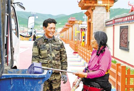 一場秋雨過後,碌曲縣尕秀村,愈發顯得純淨、空靈,寬敞幹淨的村道上不時有遊客走過。上午9時,尕秀村村民卓瑪加開著垃圾轉運車開始挨家挨戶收運垃圾。在交談中記者得知,卓瑪加每天分早中晚三次收運垃圾,每個(ge) 月有3000多元錢的收入,言語中流露出他對目前這份工作的喜歡。據尕秀村第一書(shu) 記石向陽介紹,目前在尕秀村像卓瑪加一樣依托全域無垃圾建設和美麗(li) 鄉(xiang) 村旅遊從(cong) 業(ye) 的牧民群眾(zhong) 有300餘(yu) 人。