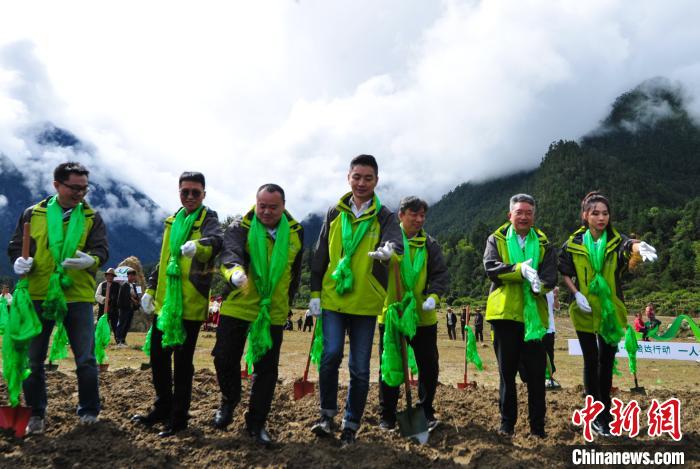 圖為(wei) 13日,因參加綜藝節目《乘風破浪的姐姐》而頗受關(guan) 注的女藝人王霏霏(左)來到西藏林芝,助力中華環境保護基金會(hui) 及聯合利華力士品牌聯合發起的“力士·綠哈達行動”十周年。 張偉(wei) 攝