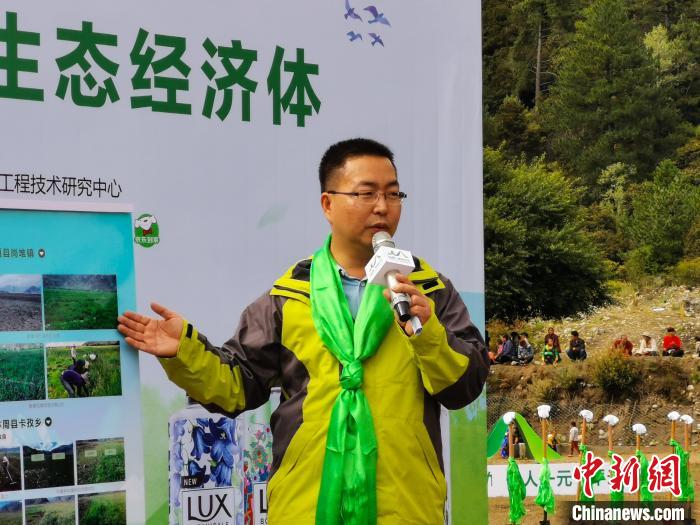圖為(wei) 西藏高原草業(ye) 工程技術研究中心武俊喜博士回顧“力士·綠哈達行動”植草曆程。 張偉(wei) 攝