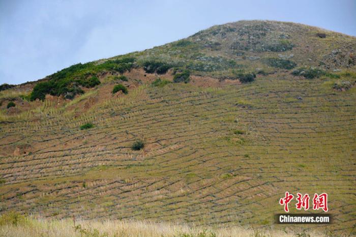 走進四川省阿壩州若爾蓋縣轄曼鎮西倉(cang) 村治沙點,山坡上巨大的“棋盤”格外醒目。縣林草局生態修複股助理工程師塗勝介紹,這是用於(yu) 治理草原沙化的高山柳沙障。