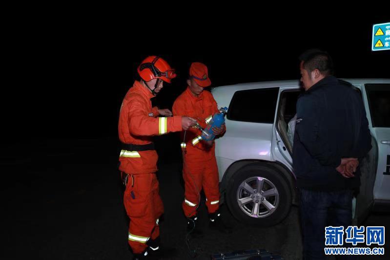 森林消防員為(wei) 受困群眾(zhong) 提供氧氣瓶。新華社發(西藏森林消防總隊提供)