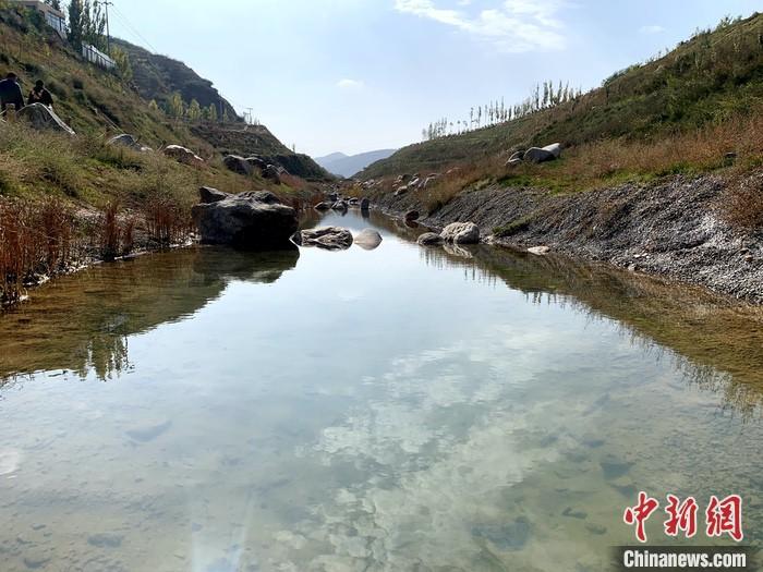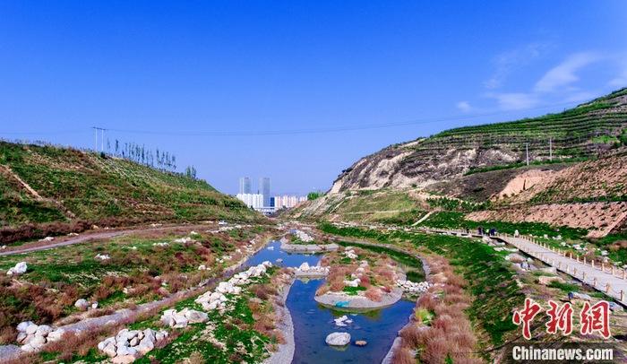10月12日拍攝的生態修複項目治理後的火燒溝,河水清澈見底,溝壑險坡重披綠裝。 中新社記者 孫睿 攝