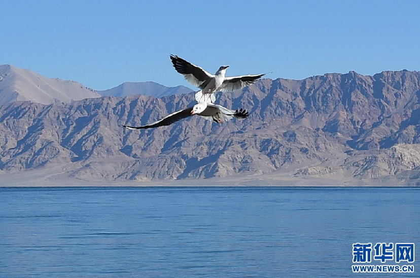 鳥兒(er) 在班公湖上空翱翔(10月19日攝)。新華網 張宸攝