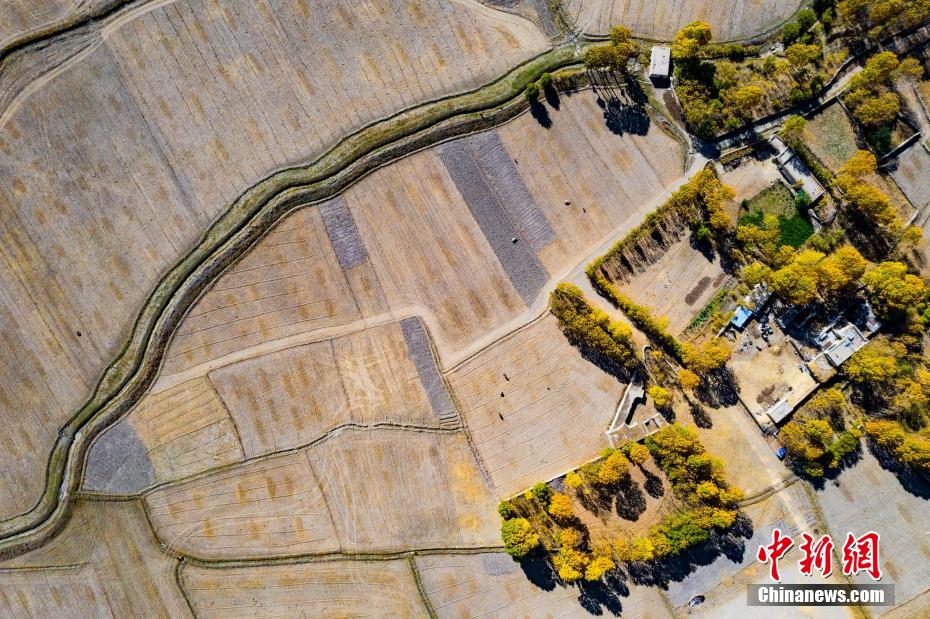 日喀則江孜縣境內(nei) 農(nong) 田、村居與(yu) 金黃的樹林相映成趣。 何蓬磊 攝