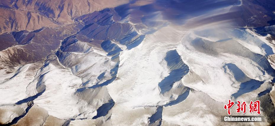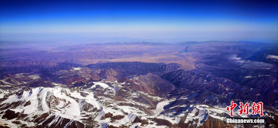 11月9日,記者從(cong) 萬(wan) 米高空俯瞰祁連山,雪域之巔造型各異,氣勢恢宏的雪山棱角分明,在皚皚白雪的覆蓋下,山巔似撒了一把把“椒鹽”,陽剛與(yu) 陰柔之美相得益彰,高原湖泊如藍寶石般鑲嵌在祁連山脈,更有藍天、白雪、黃沙和諧同框的奇觀,宛如張張“水墨丹青”的油彩畫,看“醉”空中旅人。 魏建軍(jun) 攝