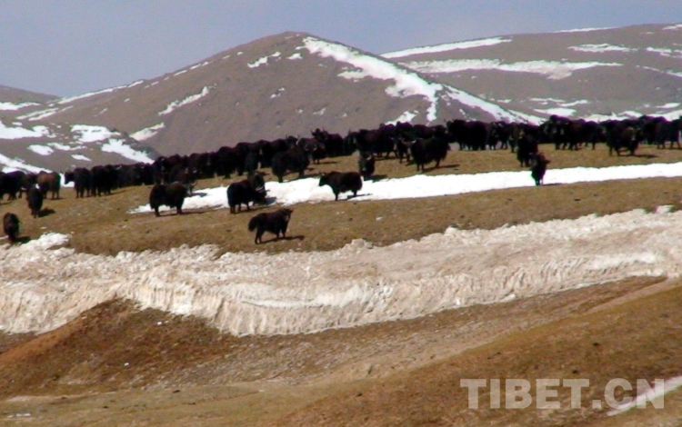 這是生活在藏北無人區雪山上的國家一級保護動物野犛牛(唐召明2008年攝)