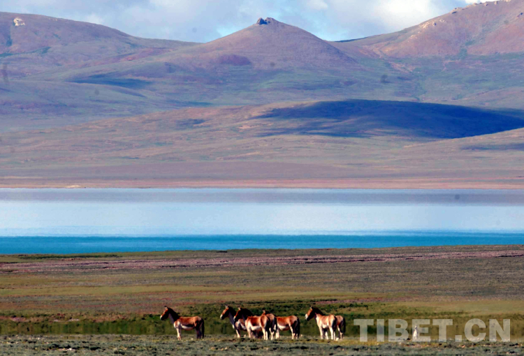 這是在藏北無人區一湖泊前悠閑生活的國家一級保護動物藏野驢(唐召明2009年攝)