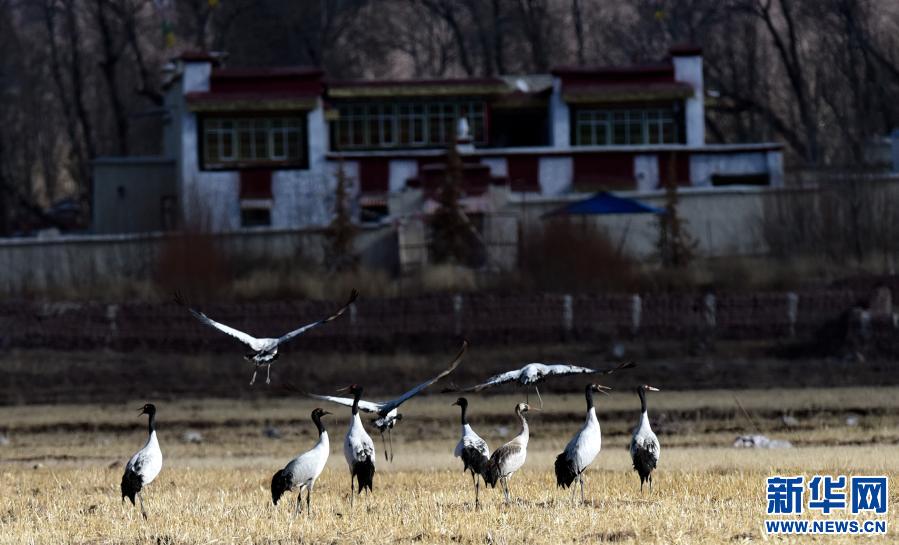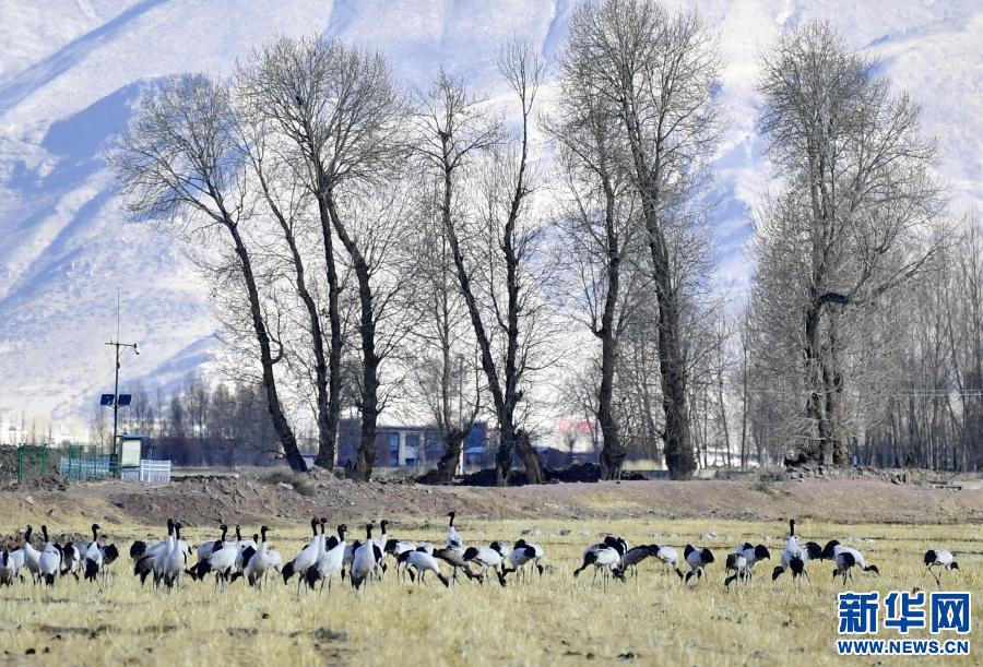 這是12月12日在林周縣黑頸鶴自然保護區卡孜鄉(xiang) 拍攝的黑頸鶴。新華社記者 黃豁 攝