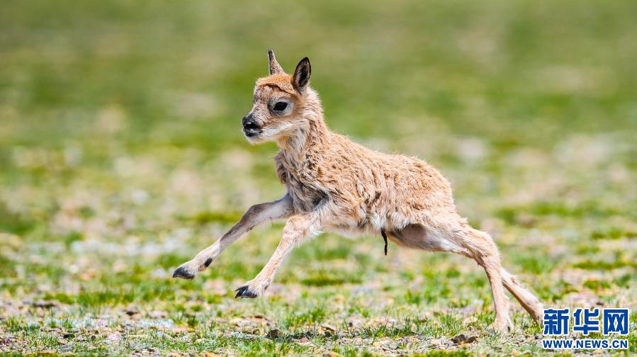 在西藏那曲市申紮縣境內(nei) 拍攝的藏羚羊幼崽(2017年6月24日攝)。新華社記者 普布紮西 攝