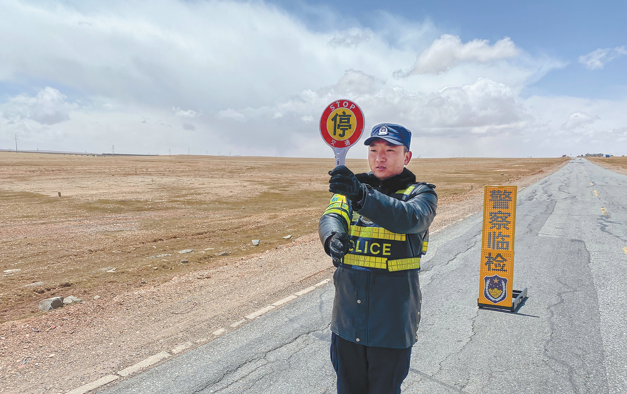 可可西裏管理局五道梁保護站隊員紮西桑周,為(wei) 藏羚羊安全穿越青藏線保駕護航。